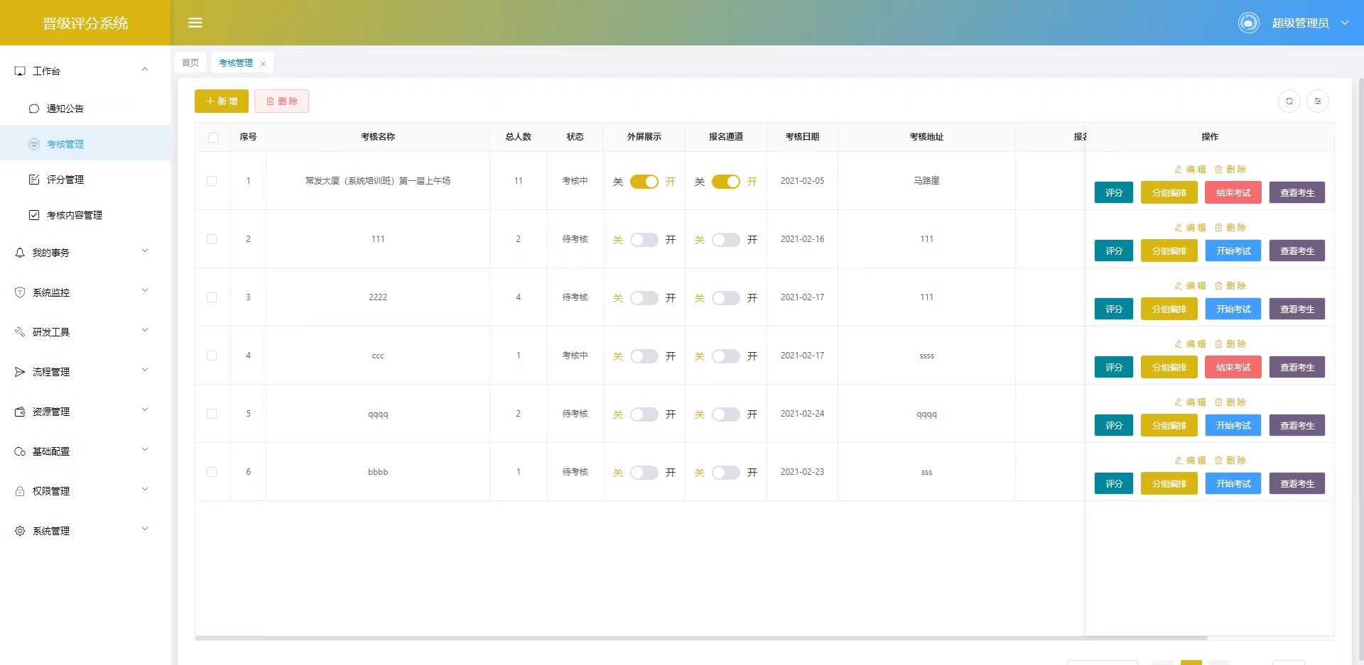 考官管理: 管理考官信息、资质等级、指派考场任务、设定评分权限。